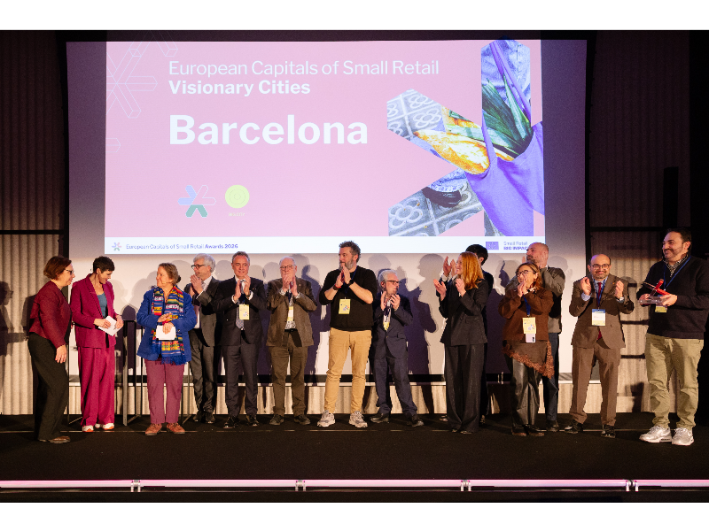 Barcelona ha estat seleccionada com a Capital Europea del Comerç de Proximitat 2026 en la primera edició dels Premis European Capital of Small Retail, en una cerimònia que va tenir lloc el 28 de gener a Brussel·les. La ciutat ha superat altres ciutats com Utrecht i Saragossa en la categoria de Ciutats visionàries, destinada a municipis amb més de 250.000 habitants.