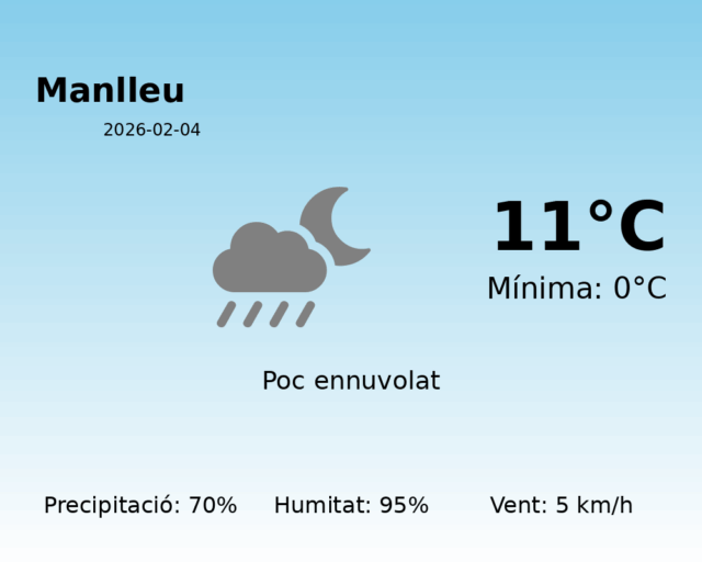 Predicció del temps per a Manlleu: 4 de febrer de 2026