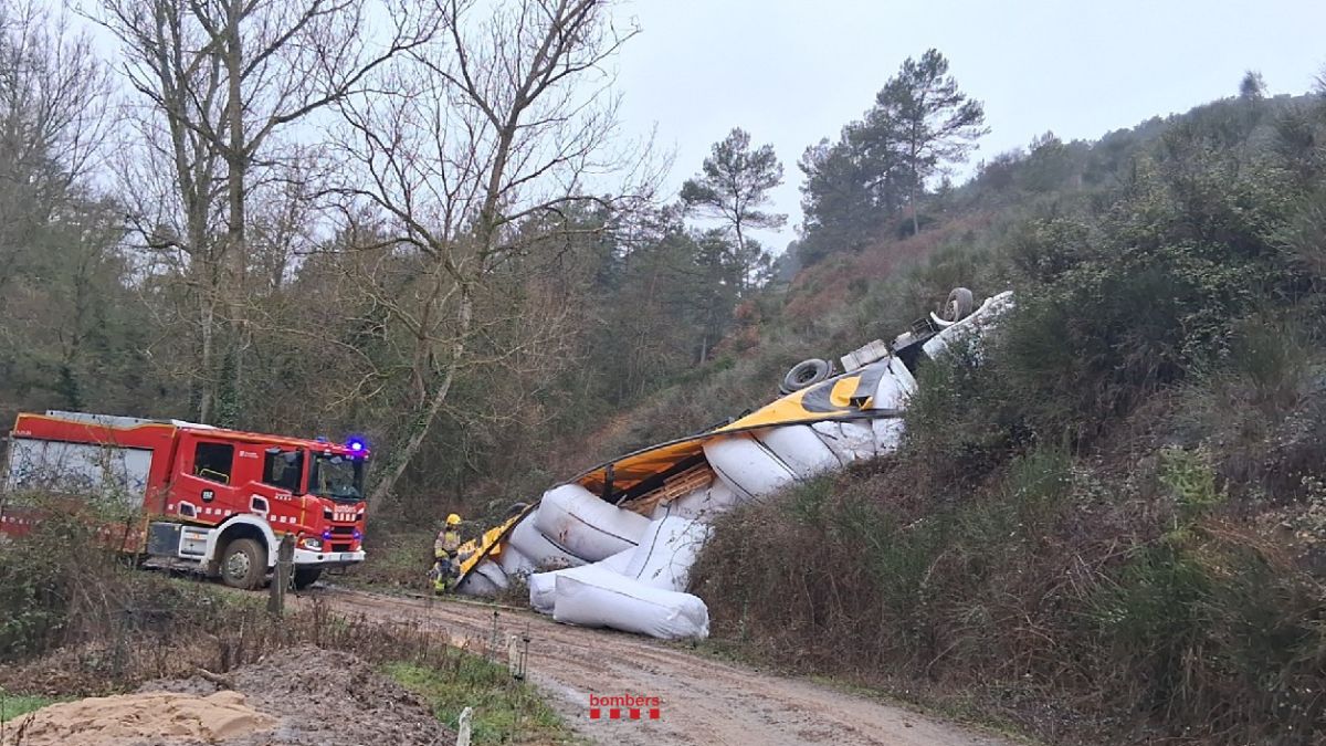 Els serveis d’emergència han rebut l’avís a les 13:35 hores. Segons les primeres informacions, el camió circulava en direcció Vic per l’eix transversal (C-25) quan, per causes encara sota investigació, ha perdut l’estabilitat i ha caigut lateralment per un marge pronunciat. El vehicle ha quedat totalment bolcat sobre un camí forestal adjacent i la càrrega de serradures s’ha escampat per la zona.